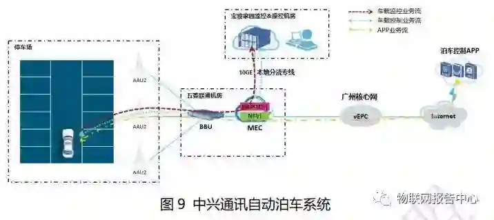中兴通讯将视频监控与智能车辆控制相结合,在广西联通(柳州) 部署了自动泊车系统。此系统通过摄像头在停车场采集视频图像,由边缘云上的第三方应用进行视频本地处理和识别。识别后的车辆信息和位置信息通过电信核心网回传到部署有车辆控制应用的中心云中进行车辆泊车控制处理。无需在摄像头本地进行视频处理和分析,也不用全部视频回传到后端服务器处理。从而达到降低摄像头成本,提升传输和控制效率的目的。