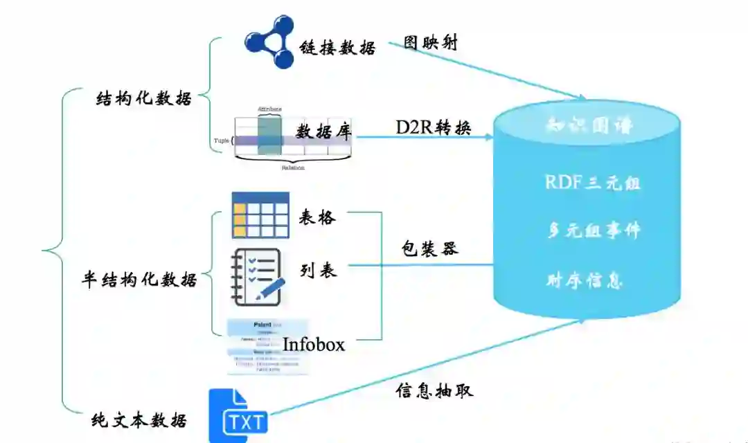 知识抽取涉及的“知识”通常是 清楚的、事实性的信息,这些信息来自不同的来源和结构,而对不同数据源进行的知识抽取的方法各有不同,从结构化数据中获取知识用 D2R,其难点在于复杂表数据的处理,包括嵌套表、多列、外键关联等,从链接数据中获取知识用图映射,难点在于数据对齐,从半结构化数据中获取知识用包装器,难点在于 wrapper 的自动生成、更新和维护,这一篇主要讲从文本中获取知识,也就是我们广义上说的信息抽取。