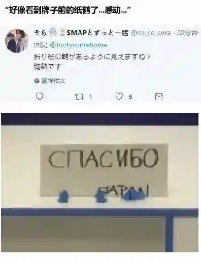 眼尖的网友甚至看到休息室中留下了折好的蓝色的纸鹤。