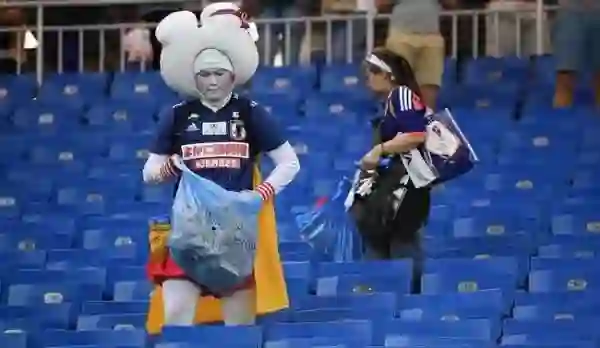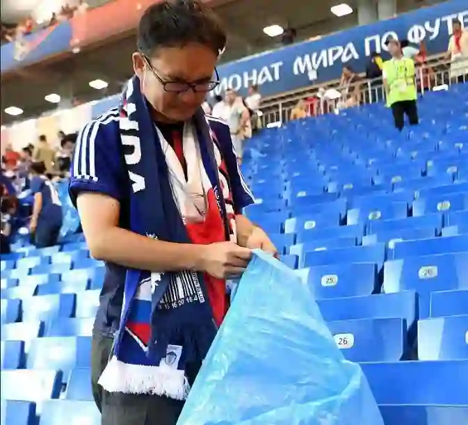 每场日本队比赛结束之后,日本球迷总是拿出垃圾袋,收拾球场上的垃圾。一次也许是装的,但次次如此,那就是发自内心。