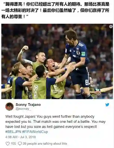 昨夜今晨(7月3日),与比利时的16强比赛,日本震惊了全世界,2-0一度领先比利时,但是最终抵挡不住欧洲红魔的狂轰乱炸,最终2-3惨遭失利。