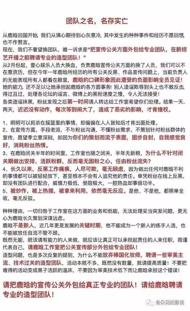 鹿饭对鹿晗回国签约的壹心娱乐非常不满,从资源、包装、计划等都达不到饭粉们的高标准。他们经常批评公司不作为、宣传公关不到位、反黑不及时、对粉丝声音消极应付。