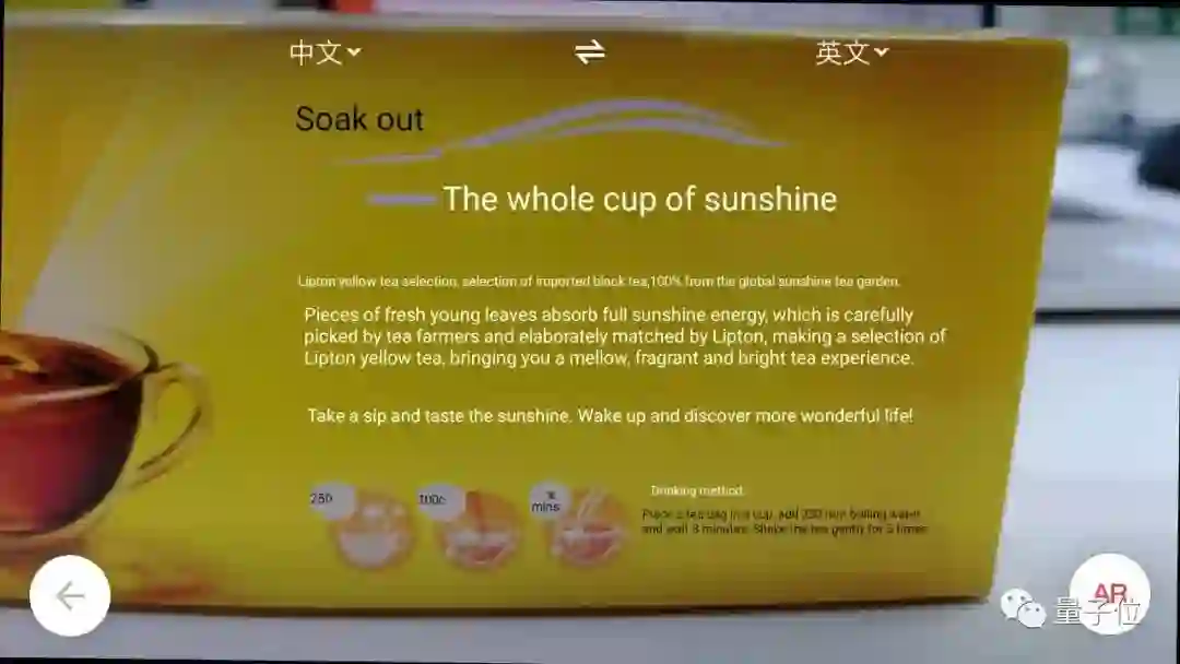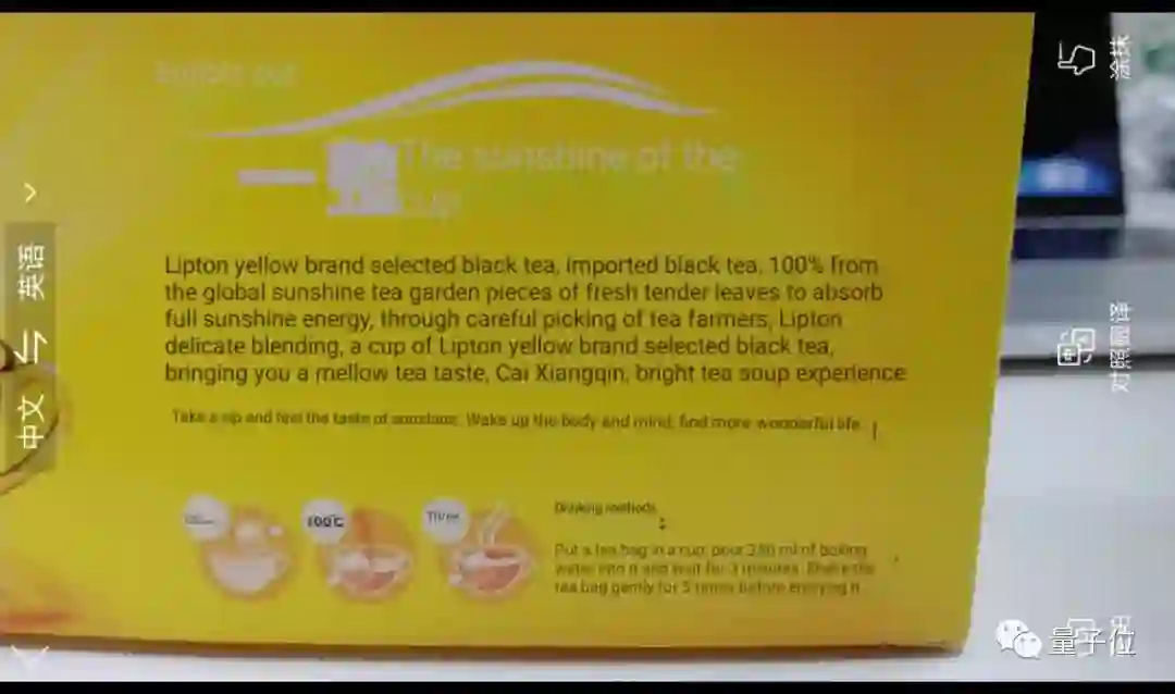 中文素材就比较常见了,量子位随手拿出了一盒立顿红茶。