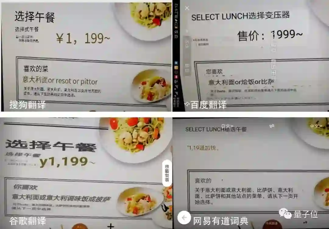 只有百度和谷歌把面、饭和披萨三种食物都翻译了出来,但百度出了个大BUG,生生把午餐的价格抬高了800日元。