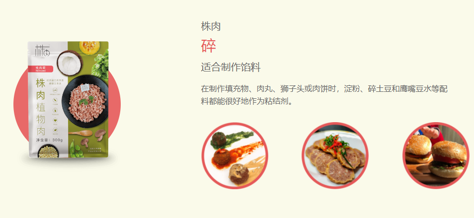 以国内的植物肉厂商星期零和 Z-Rou Meat (株肉)为例,都推出了肉丸、肉松、肉酱不同形态和风味的产品,适用于中西餐厅和家庭烹饪场景。