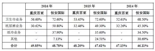 卫生巾的利润率一般高于婴儿纸尿裤和其他成人卫生用品,也高于一般纸品。据公开数据,2016年卫生巾龙头老大恒安集团旗下卫生巾业务年收65亿,毛利率稳定在72.6%。