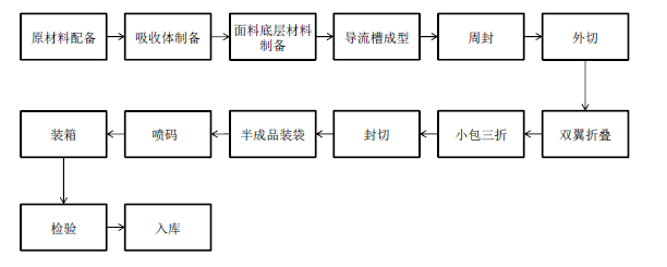 一次性卫生用品由于直接与人体接触,在生产制造流程上有一定特殊性。如果我们解构一片卫生巾,则由上到下分别是:
