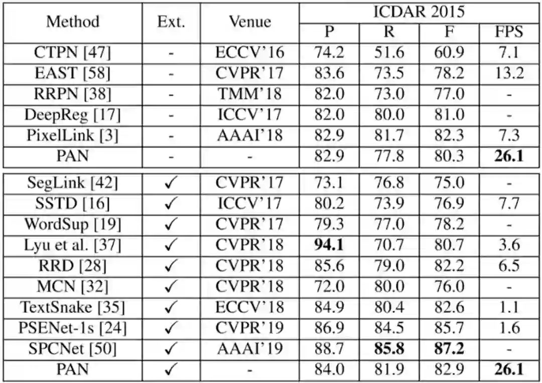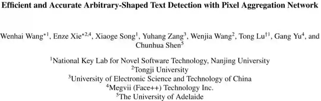 [1] Wenhai Wang , Enze Xie and Xiaoge Song.Efficient and AccurateArbitrary-Shaped Text Detection with Pixel Aggregation Network. In ICCV, 2019.