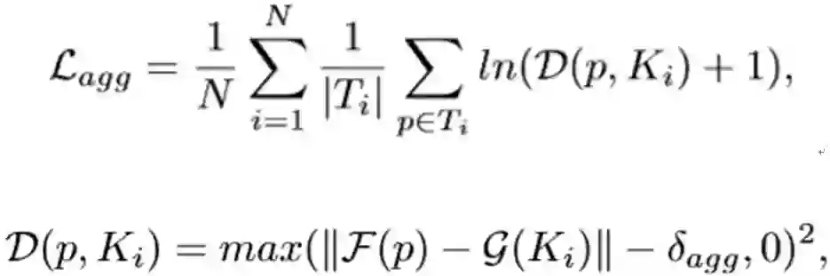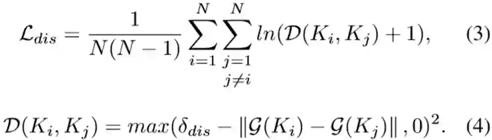 此外,聚类中心也需要一直划分清楚,不同文本的核需要保持足够的距离。因此在训练时也用如下损失函数引导训练。