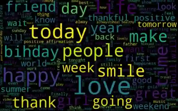 和之前一样,大多数词是积极的或中立的,其中“happy”“smile”“love”最常见。