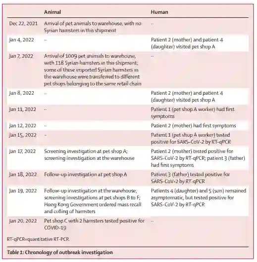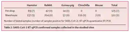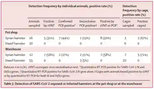 在进行了RT-qPCR或血清检测之后,宠物店内16只叙利亚大颊鼠(黄金鼠)中的8只(50%),以及相关联的库房内12只叙利亚大颊鼠中的7只(58%)新冠呈阳性。