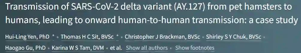3月12日,医学顶级期刊「柳叶刀」上的一篇名为「案例研究:SARS-CoV-2型delta变异病毒(AY.127)从宠物仓鼠传播到人,引发人际传播」的论文引发热议。