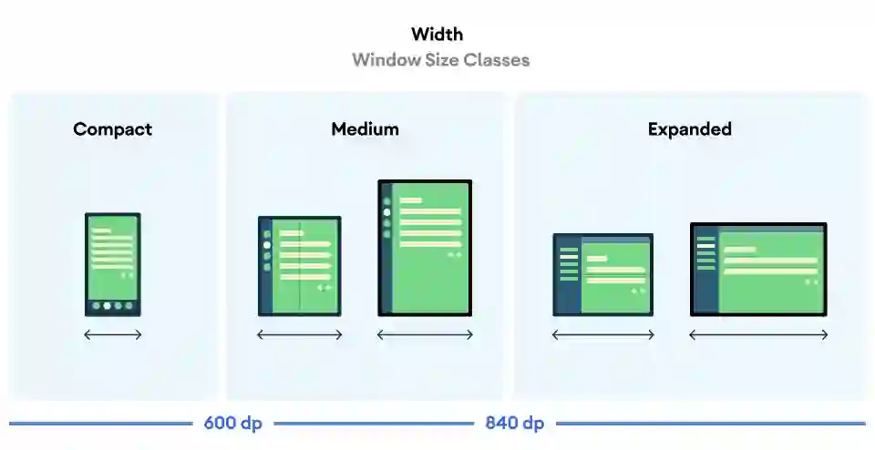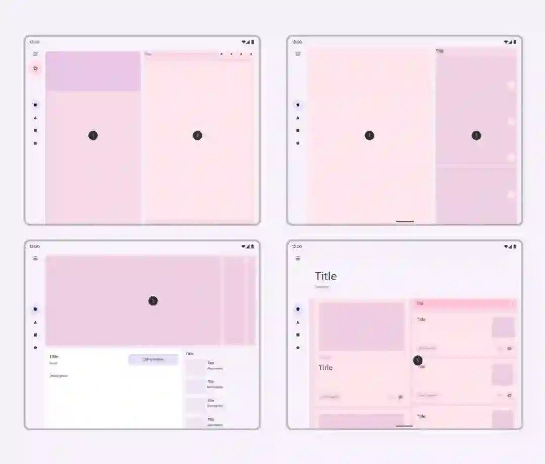 为了向用户提供最佳的导航体验,您应该提供针对用户设备窗口尺寸类量身定制的导航界面。推荐的导航模式包括适用于紧凑屏幕的导航栏,以及适用于中等屏幕宽度的设备类和更大屏幕设备 (600dp 以上) 的导航栏。对于屏幕更宽的设备,我们新发布的 Material Design 指南中提出了几个有关大屏幕布局的方案,例如可以使用 SlidingPaneLayout 来实现列表/细节结构。您可以查看指南,了解如何在 View 和 Compose 中实现响应式 UI 导航。