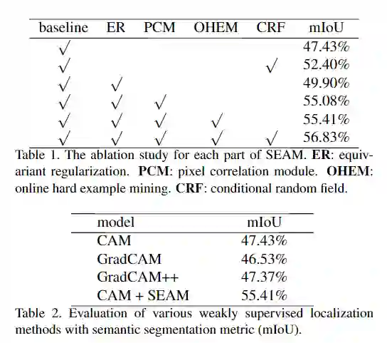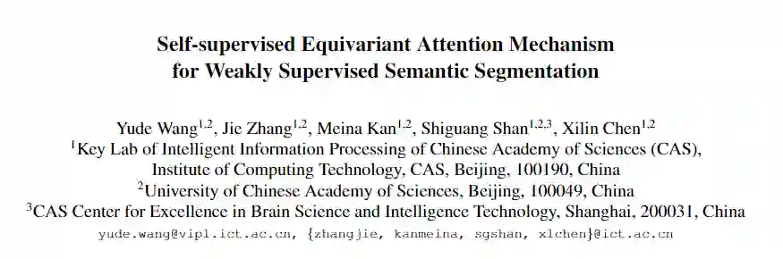 提出了一种自我监督的等变注意机制(SEAM),将等变正则化与像素相关模块(PCM)结合在一起,以缩小完全监督和弱监督语义分割之间的监督差距。