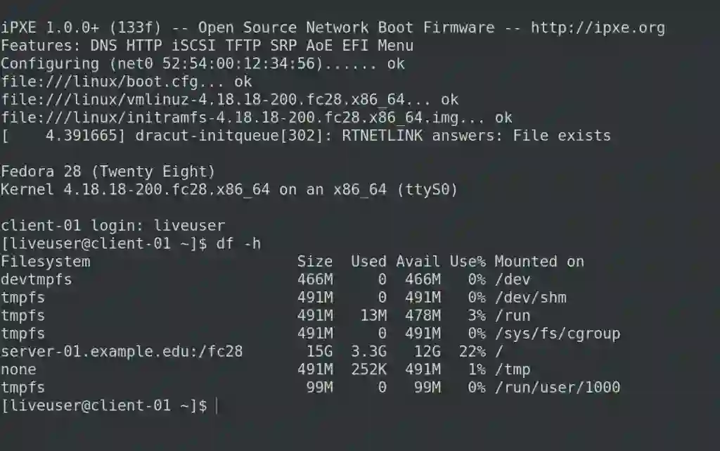 现在,我们已经有了可以进行网络引导的操作系统,我们需要一个引导加载器去从客户端系统上启动它。在本教程中我们使用的是 iPXE[7]。