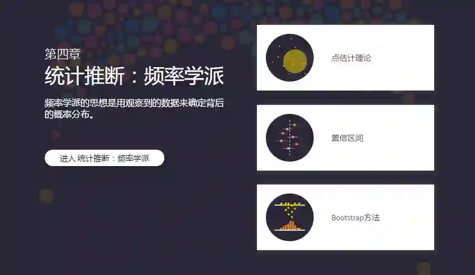 来自斯坦福大学的一位研究生和他的伙伴们开发了一本颇有新意的统计概率入门教材,与传统教材不同的是,这本书充分利用了数据可视化技术,交互性和趣味性都非常强,可以边读边玩。
