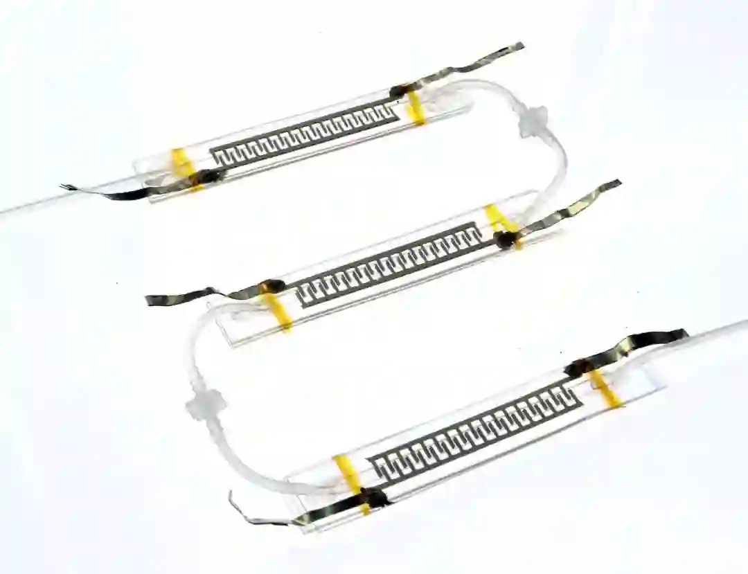 顶层和底层是厚度为0.4mm的PDMS膜,其上图案化30μm厚的柔性电极。
