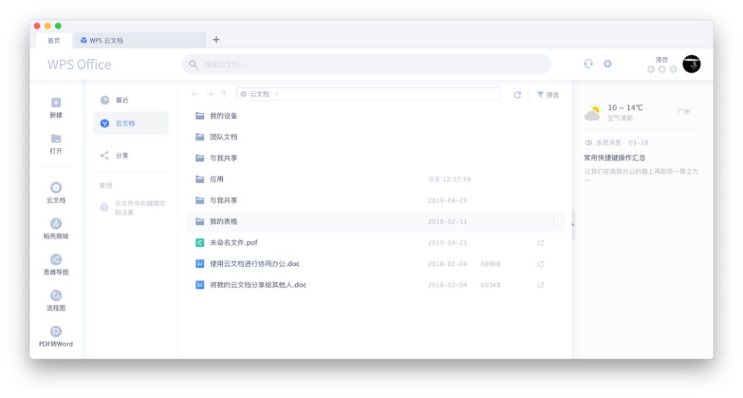 WPS 目前应该是国内兼容微软 Office 做得最好的产品,近两年界面设计也更加简洁,还推出了团队协作功能。云文档默认为每位用户提供了免费的 1GB 云存储空间,不仅支持实时同步、查看编辑记录,还支持全文检索、历史版本等功能,可以在所有支持标准 HTML5 浏览器上登录 WPS 账号后,在任何场景下实现全平台创作。
