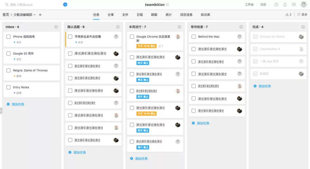 Teambition 是本土工具中,接近 Trello 功能又比较多的工具产品,发展了很多年之后,已经被阿里收购。本土工具的优点就是中文化和响应速度都很好,我派主要用来做目标管理和商务流程管理。它的特点是创建项目时提供了 40 多种模板,涵盖了产品研发、市场营销、行政人事等多个方面,每个模板都有已经划分好的任务流程,只要找到合适的项目就能快速创建项目并设置好任务列表。