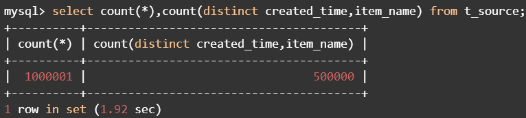 源表中有100万条数据,其中有50万created_time和item_name重复。