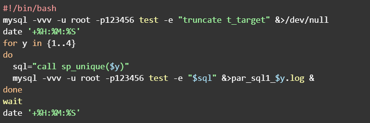 mysql -vvv -u root -p123456 test -e "