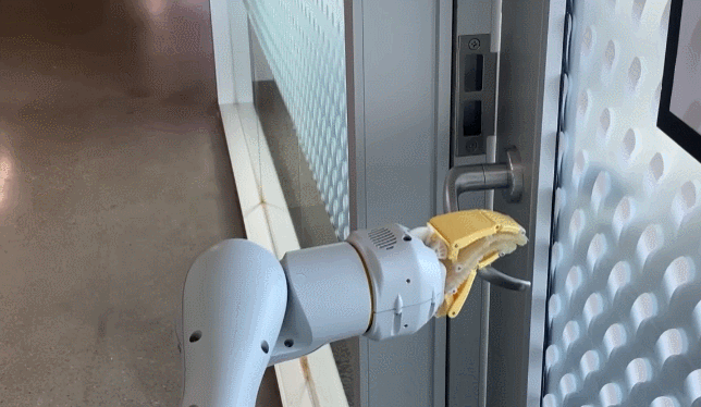 负责机器人学习的工程师 Mrinal Kalakrishnan展示了他的团队如何训练一个机器人推开一扇门,这也是在谷歌校园里一些机器人工作所必需的任务,例如机器人需要走进会议室才能通过传感器确定碳水平是否超标。开启门锁训练只需要不到10个小时,但一旦一个机器人学会了一些东西,这些知识就会被送回整个集体云智能中,然后所有的机器人都可以用这些技能门锁。