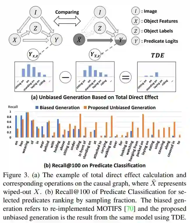 已有的场景图生成容易受有训练偏见的问题,例如将海滩上人类的步行、坐、躺等多样行为类型笼统分为海滩上的人类。这篇论文提出了一种新的基于因果推理的场景图生成的框架。首先建立因果图,然后使用该图进行传统的有偏训练,接着从训练图上得出反事实因果关系,以从不良偏置中推断出影响并将其消除。场景生成基准集Visual Genome上的实验表明这篇论文所提的方法与以前的最佳方法相比有显著改进。
