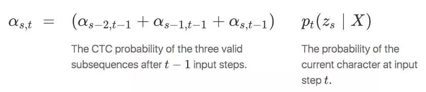 (s,t)表示第t个输入时Z1:s的CTC得分αs,t