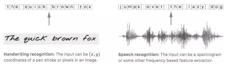 手写识别:输入的坐标由笔画/像素在图中位置决定;语音识别:输入可以是声谱图或是基于其他频率提取的特征