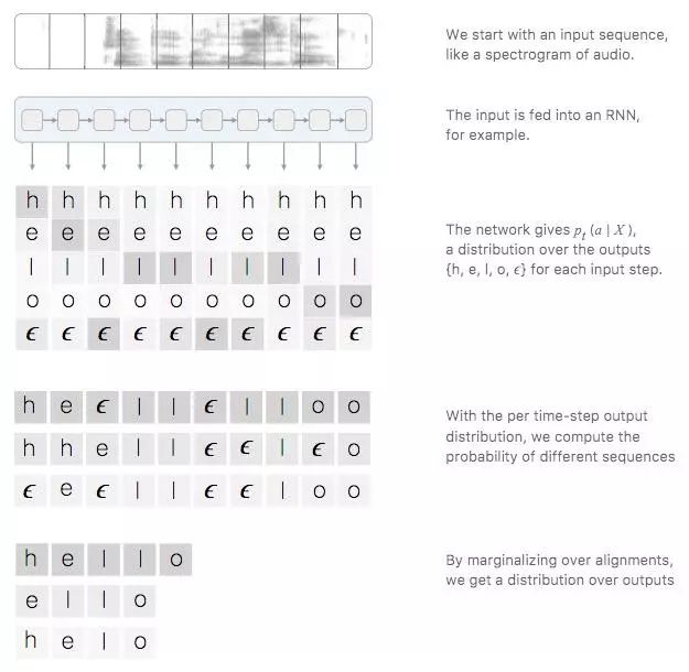 在这种情况下,联结主义时间分类器(Connectionist Temporal Classification),又名CTC,是一种让网络自动学会对齐的好方法,它十分适合被用于语音识别和书写识别。