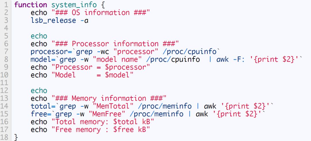 让我们创建一个显示 GNU/Linux 信息的函数