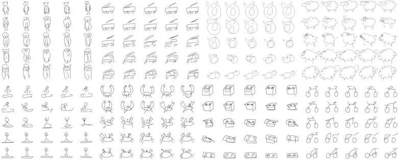 你可能看过谷歌的 Quick, Draw! 数据集,其目标是 20 秒内绘制不同物体的简笔画。谷歌收集该数据集的目的是教神经网络画画。