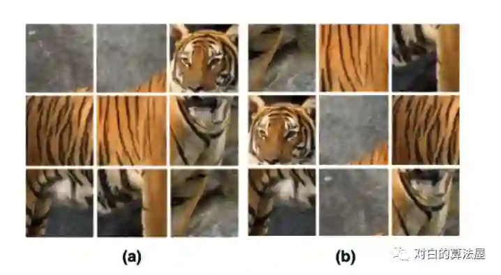 解决拼图问题是无监督学习中一个非常重要的部分。在对比学习中,原图被当作anchor,打乱后的图片被当作正样本,其余图片被当作负样本。