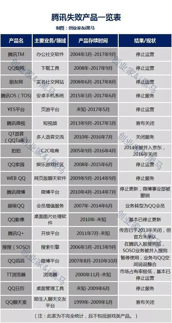 编者按:听说创业公司只要招到腾讯的产品经理就不用愁了?No,梳理一遍腾讯的产品孵化史,你会发现腾讯并不是神:QQ、微信的光环之下,其实也有着众多的失败产品。
