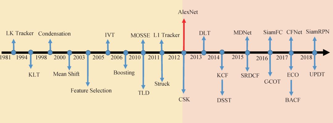 以AlexNet网络为代表的深度学习方法在图像识别等领域获得了巨大成功,迅速被引入到目标跟踪领域中