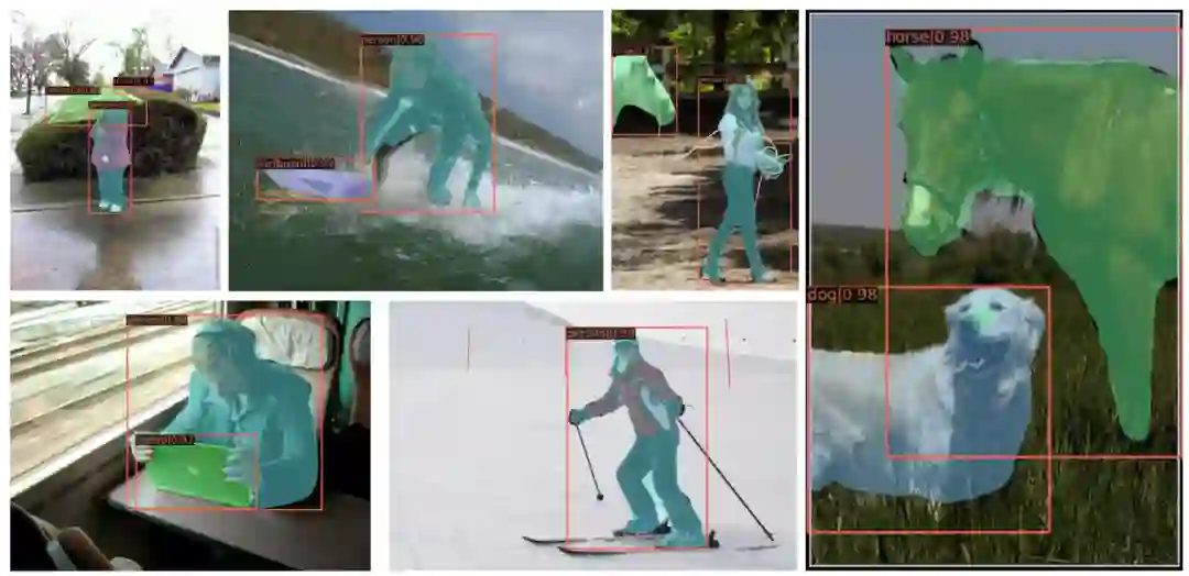 。图五也显示了目标检测和实例分割的结果。