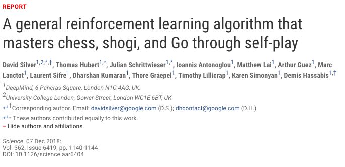 今天,DeepMind的通用棋类算法,也是迄今最强的棋类AI——AlphaZero,经过同行评议,被顶级期刊 Science 以封面论文的形式,正式引入学界和公众的视野。