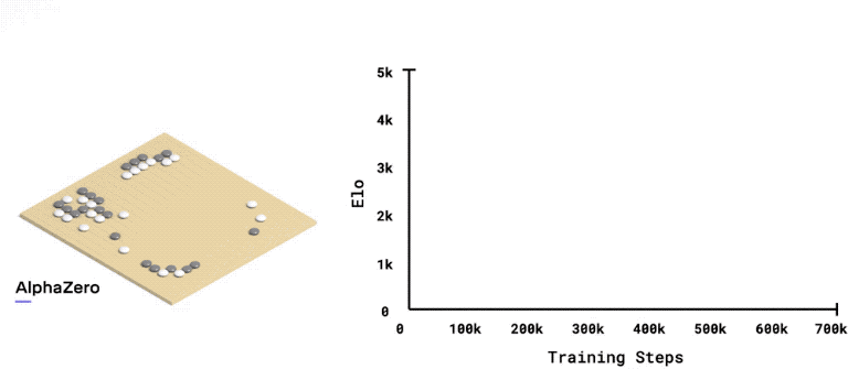 在国际象棋中,AlphaZero仅用了4个小时便首次超越了Stockfish;在日本将棋中,AlphaZero在2小时后首次超过Elmo;在围棋方面,AlphaZero在2016年的比赛中,经过30个小时的鏖战,首次击败了传奇棋手李世石。注:每个训练步骤代表了4096个落子位置。