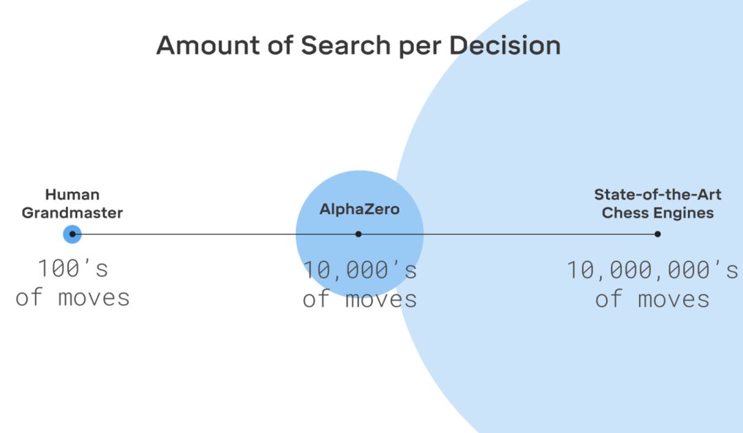 例如,在国际象棋中,它每秒仅搜索6万个位置,相比之下,Stockfish大约有6千万个位置。