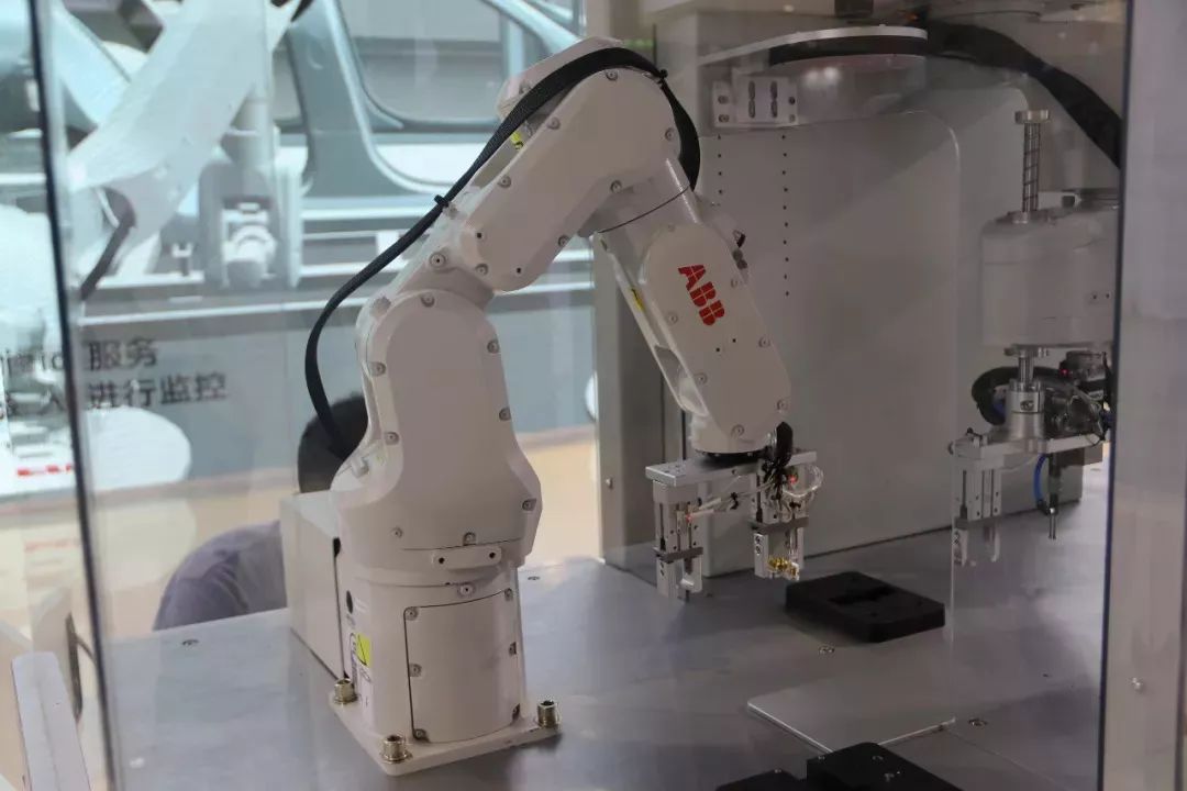 YuMi单臂机器人和双臂机器人、YuMi和IRB 1100机器人组成的柔性生产线、气势浩大的汽车车身除尘(小编一到展台就被吸引过去了+引无数人拍照,你说气势浩不浩大)、白车身标准部件解决方案、物流配送机器人解决方案、物品分拣、3D视觉技术质量检测和电动汽车电池制造。