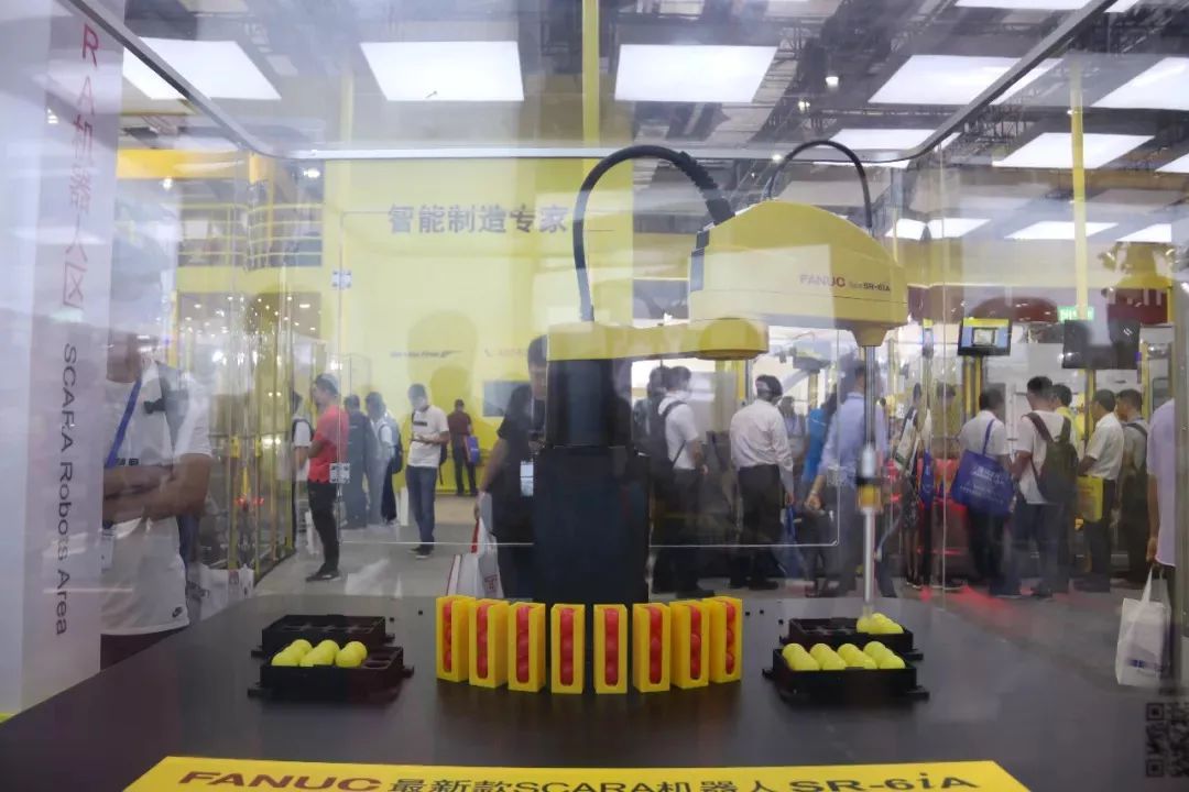 据小编统计,发那科这次的展区共分为11个部分,囊括了传统的机器人智能制造解决方案,诸如人机协作区、智能工厂区、SCARA机器人区等;
