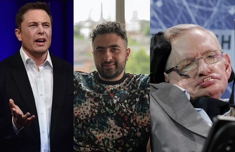 Tesla的执行长马斯克(左)与Deepmind(即AlphaGo的研发公司)的创办人苏莱曼(中)曾与百名专家共同呼吁禁止LAWS。已逝的物理学家霍金(右)也曾警告AI的危险性应谨慎应对。 图/法新社、维基共享、路透社