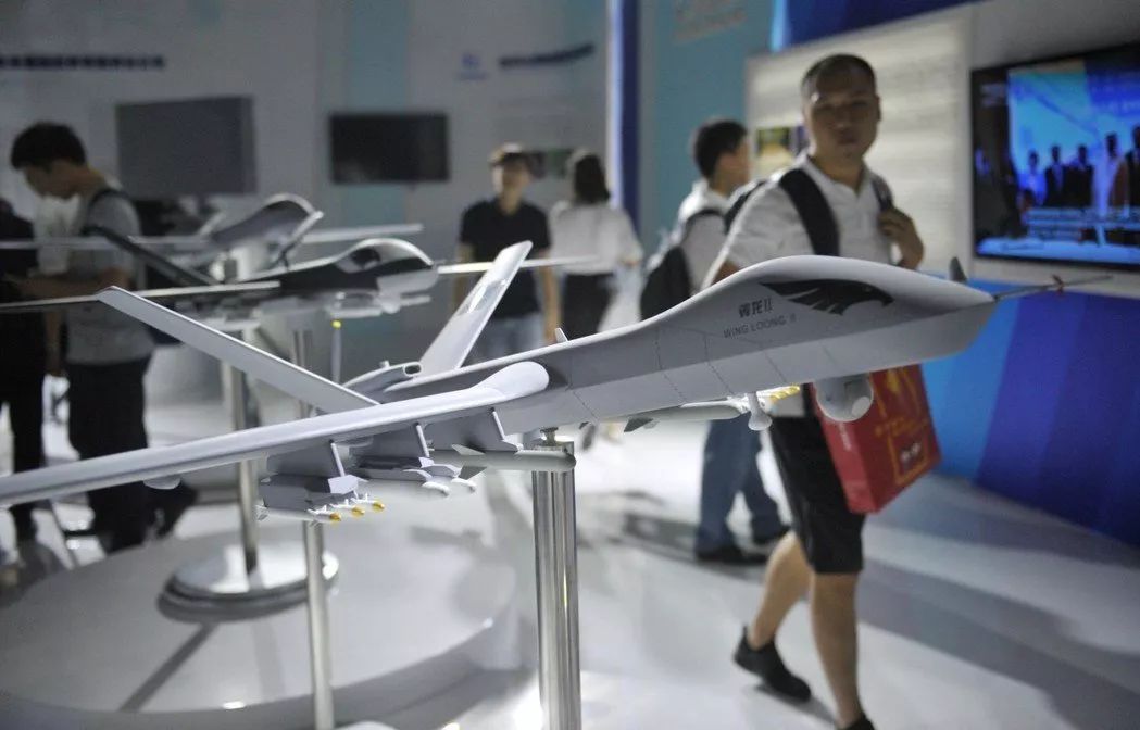 一些中东国家因向美国购买军用无人机遭拒,而转向中国。这不仅助长了中国的武器出口,更可能因为数据的导入,有利于中国LAWS技术的进步。图为中国第十七届中国西部国际博览会上,展示的翼龙系列无人机模型。 图/中新社