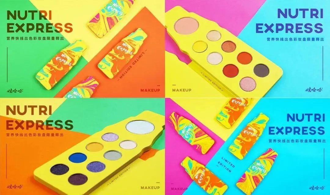 2018年,营养快线开始年轻化:也在瓶子上做文章,发布炫彩版包装;跨界推出限量版彩妆盘;并在杭州、广州、武汉三地开设快闪店,打造“营养快线补色间”。