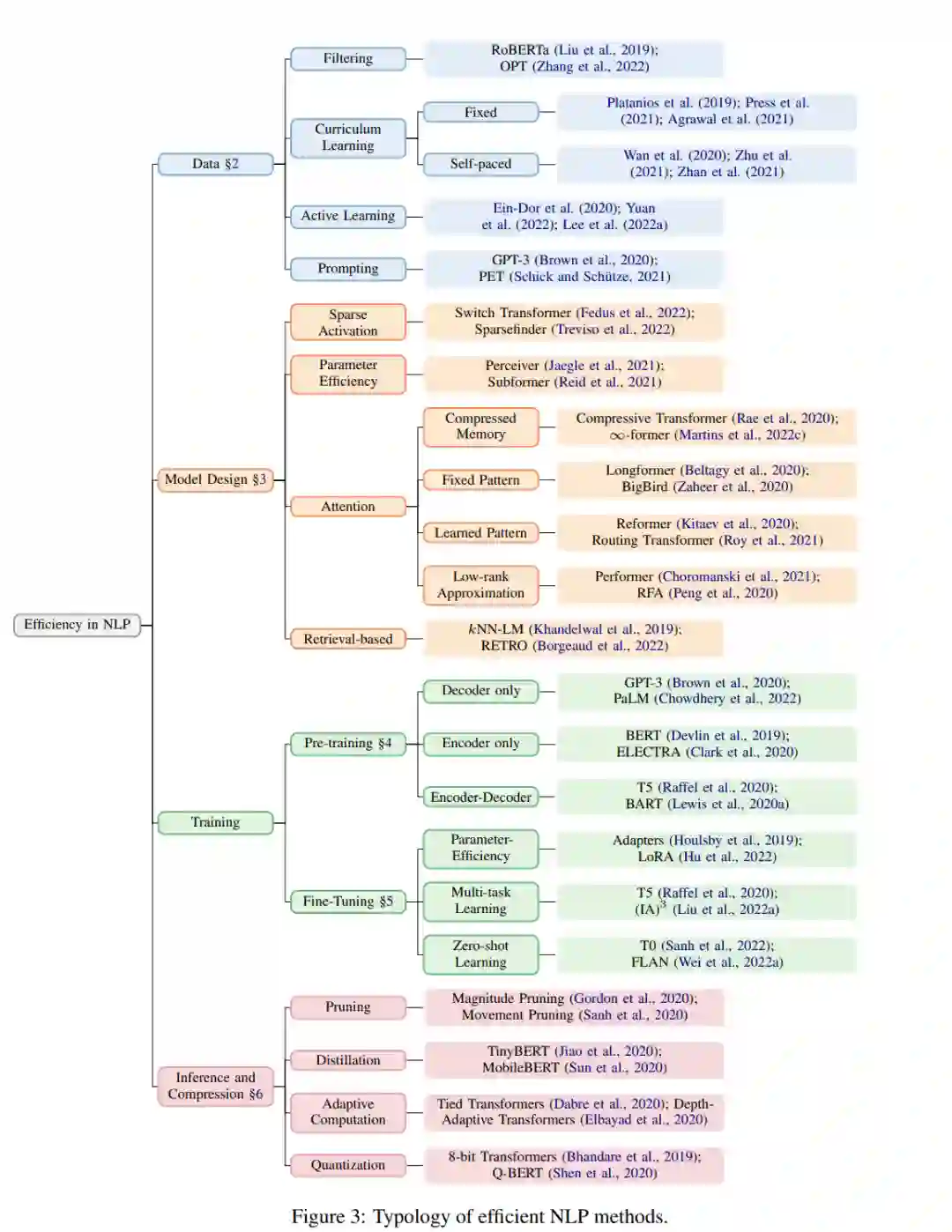 下图 3 概述了该研究归纳整理的高效 NLP 方法。