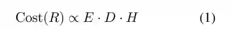 方程(1)描述了一个人工智能模型产生某种结果(R)的训练成本(Cost)与三个(不完备的)因素成正比: