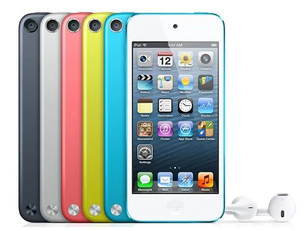2012年9月,苹果终于更新了一波产品线,发布了iPod nano 7和iPod touch 5,前者变得更加轻薄,又恢复到iPod nano的长条形状,加入了home键和蓝牙的支持,后者变成了类似iPhone 5的造型,由不锈钢后壳变为铝质后盖,拥有了更加多的配色。