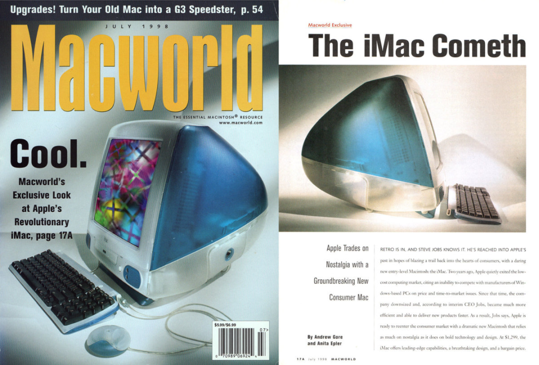 在iMac G3刚推出的那个年代,即使是在高度发达的美国,互联网对于中产阶级来讲仍然是个非常新鲜的事物,而苹果取的iMac名字,就以通俗易懂的形式向大家说明了新一代的Mac具备网上冲浪的功能。在这之后,苹果陆续推出了iTunes、iMovie和iBook等应用软件,在iPod推出之前,“i”已经成为了苹果品牌的一个象征。