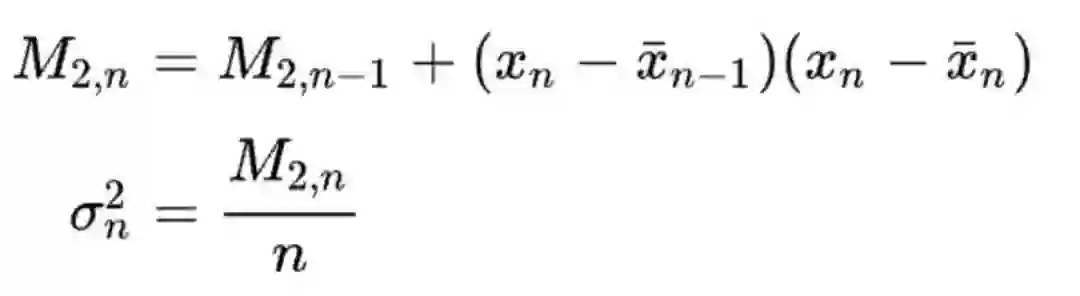 常见的求方差的方法有 two pass 方法、naive 方法、和 Welford 算法,本文摘录一些关键的公式和结论,详细的介绍和推导可参考:Wiki: Algorithms for calculating variance(https://en.wikipedia.org/wiki/Algorithms_for_calculating_variance) ,和 【GiantPandaCV: 用Welford算法实现LN的方差更新】— https://mp.weixin.qq.com/s?__biz=MzA4MjY4NTk0NQ==&mid=2247497854&idx=1&sn=d5811f7cfb2b8a58931dbf3222cfdf3d&scene=21#wechat_redirect