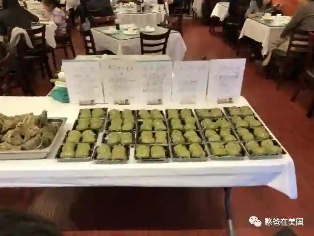 首先我把两个孩子带到餐馆的入口处(这是一家我最爱的中餐馆),看下面这张图,入口处有一张桌子,上面放的一堆青团、粽子。
